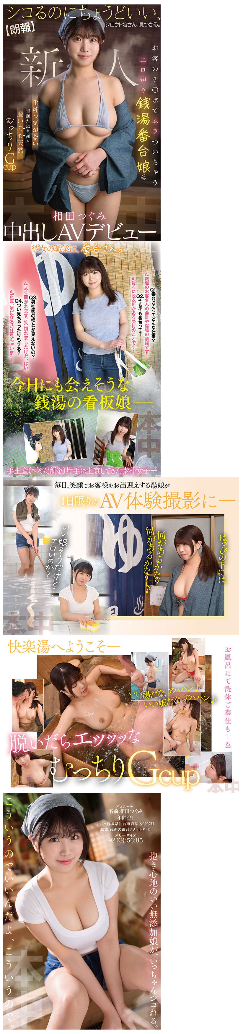 Tsugumi Aida - (Hooray) We Will Find An Amateur Who's Perfect For Fapping To. Slim Sexy Bathhouse Attendant Who Gets Turned On By Customers' Cocks Has a Raccoon-Like Youthful Face That Requires No Makeup and a Plump All-Natural G-Cup Underneath It All. Tsugumi Aida's Nakadashi AV Debut |